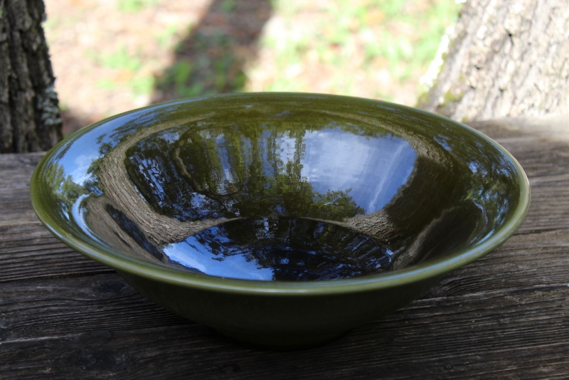 Fijne oude schaal van aardewerk / terracotta, geglazuurd in prachtige tinten van donkergroen.