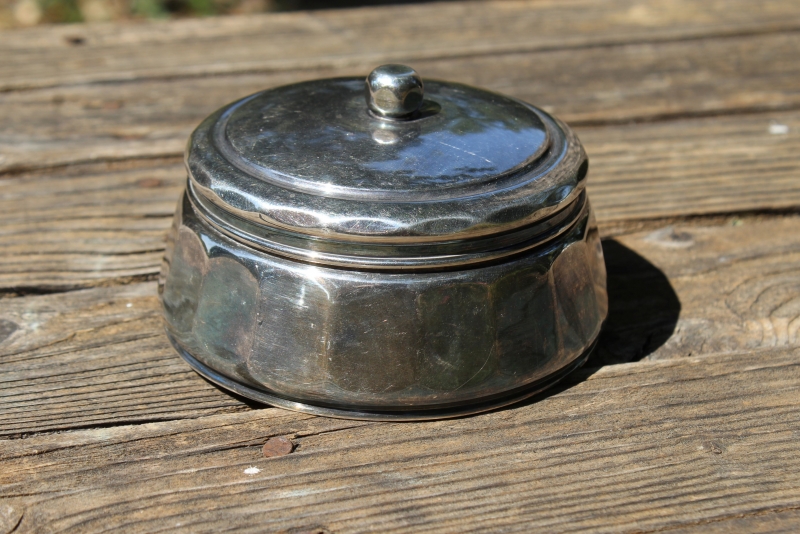 Gezellig verzilverd dekseldoosje, rond en uitlopend van vorm.
