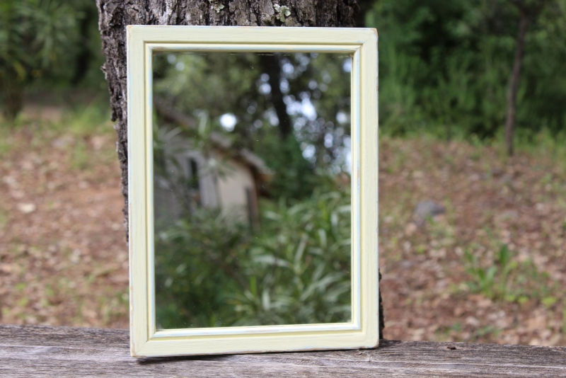 Grappig kleine spiegeltje met houten lijst.