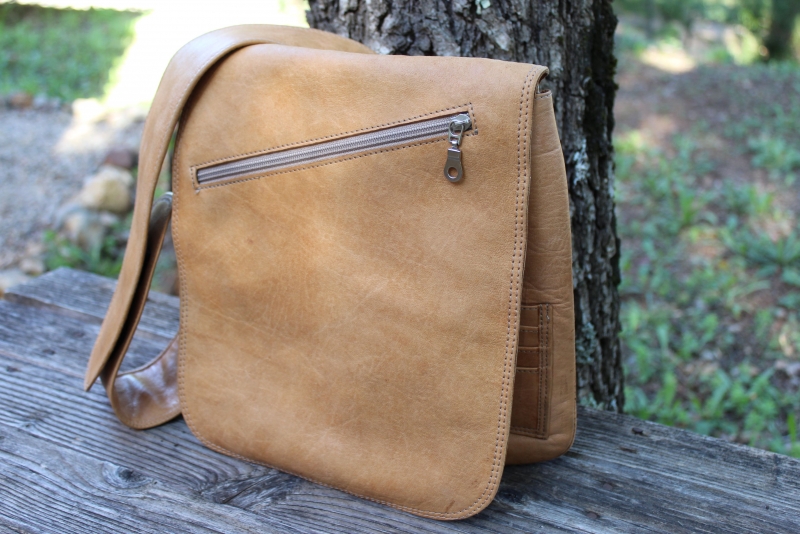 Deze rechthoekige tas heeft een ritsvak voorop de overslag-klep.
