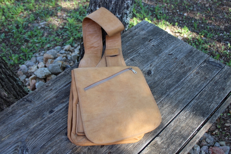 Elegante schoudertas, uitgevoerd in lichtbruin leer.