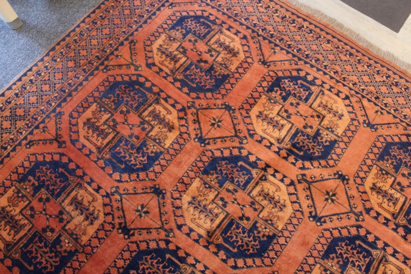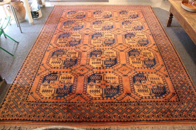 Dit fraaie en forse tapijt betreft een woestijn-tapijt, van oudsher al vervaardigd door de Ersari-stam, een nomadenvolk, oorspronkelijk afkomstig uit Turkmenistan.