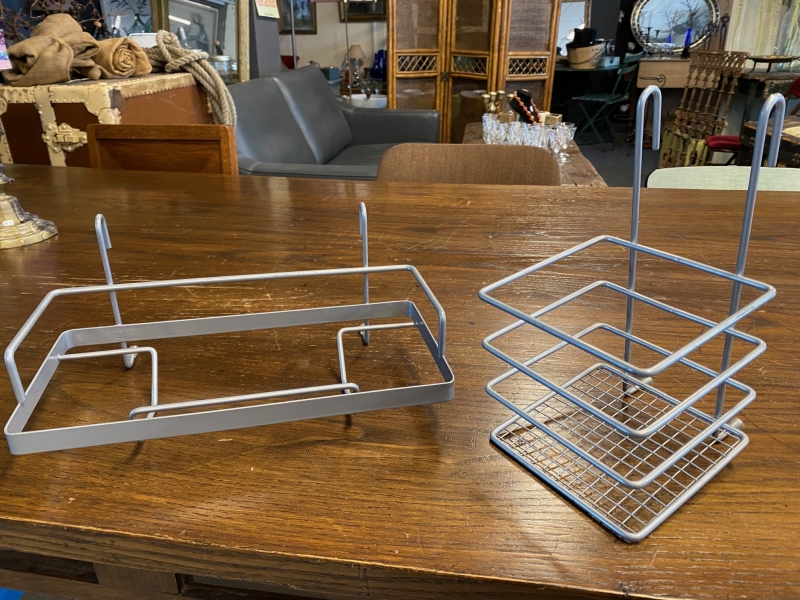 Het betreft 1 rechthoekig opberg-rekje (voor bijvoorbeeld een keukenrol) en 1 vierkant opberg-bakje.