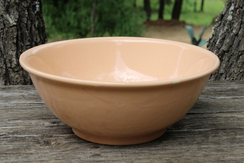 Grote ronde schaal van aardewerk, uitgevoerd in zalmroze.
