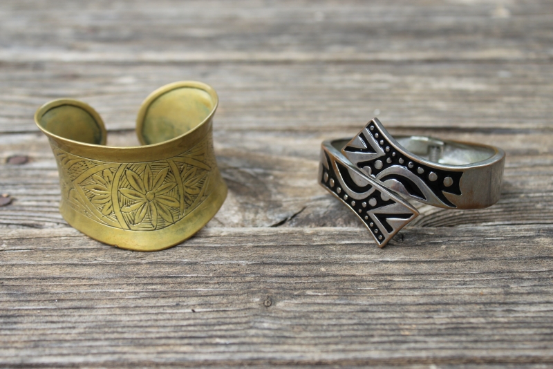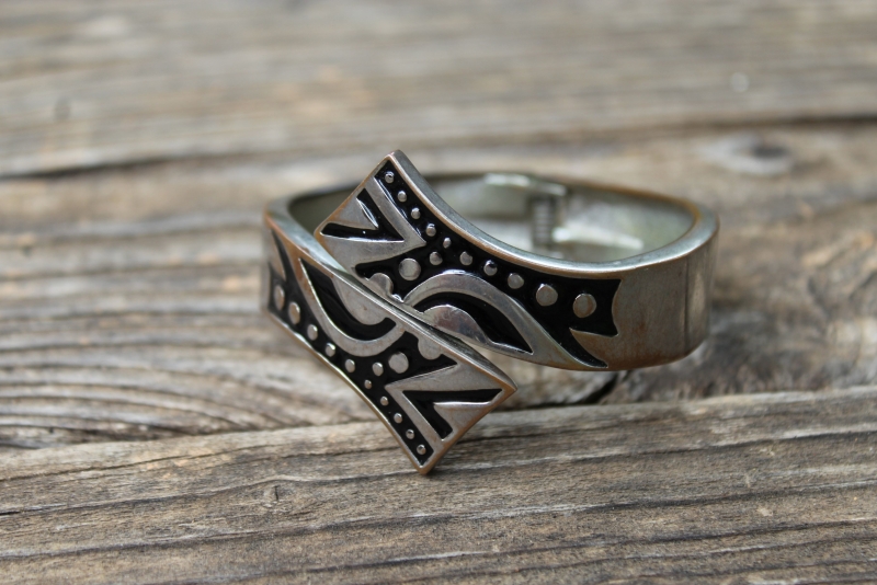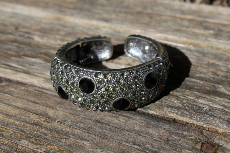 Oude verzilverde stijve armband, met scharnier-functie.