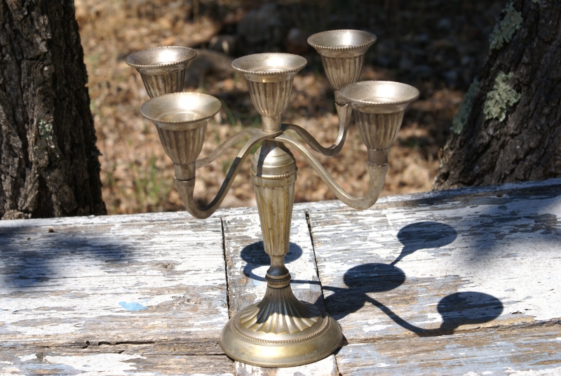 Kleine verzilverde 5-lichts kandelaar.