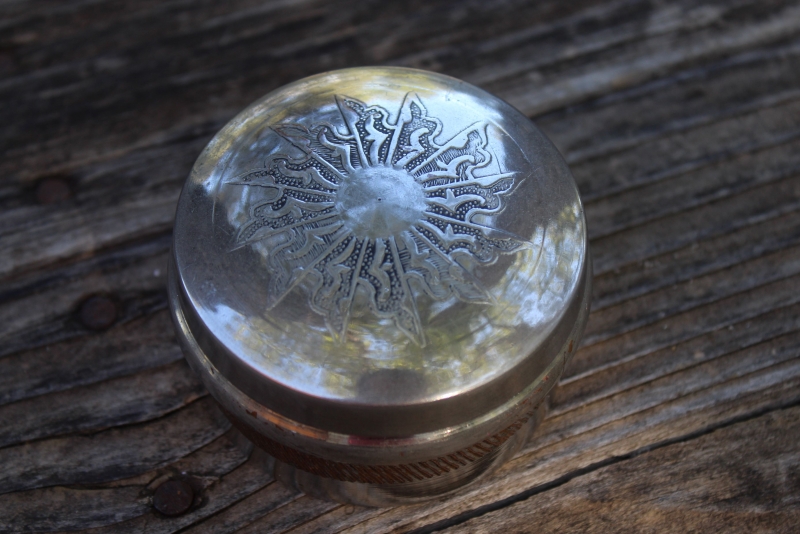 Gezellig verzilverd dekseldoosje, rond en uitlopend van vorm.