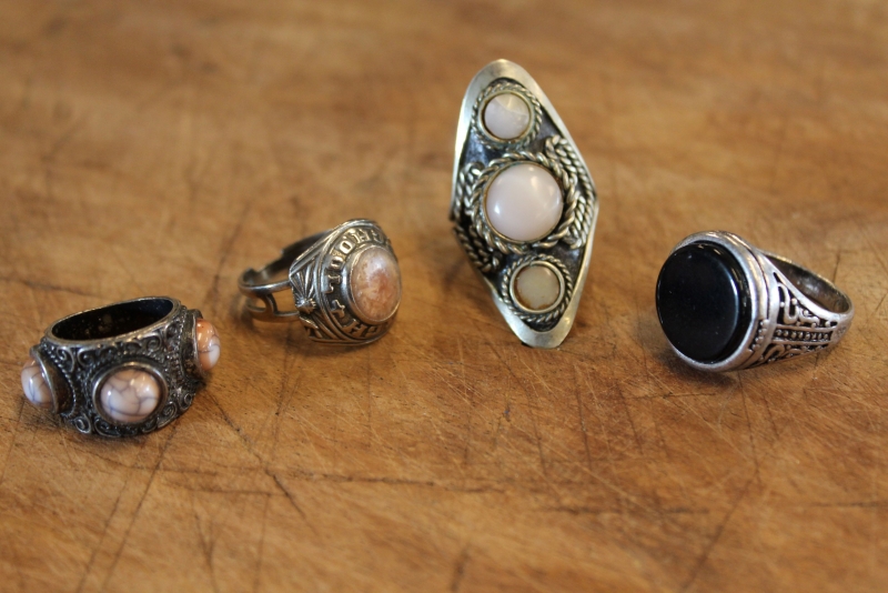 Verzameling van in totaal nog 2 verzilverde ringen, allemaal met mooie sierstenen: