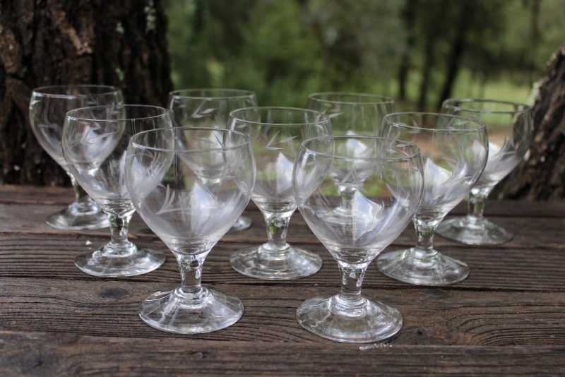 Set van 9 oude likeurglazen, op lage voet.