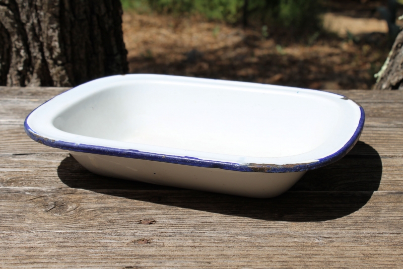 Geëmailleerde rechthoekige schaal, oude medische (instrumenten)schaal.