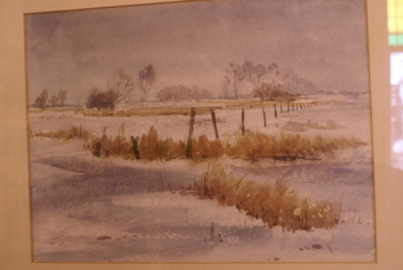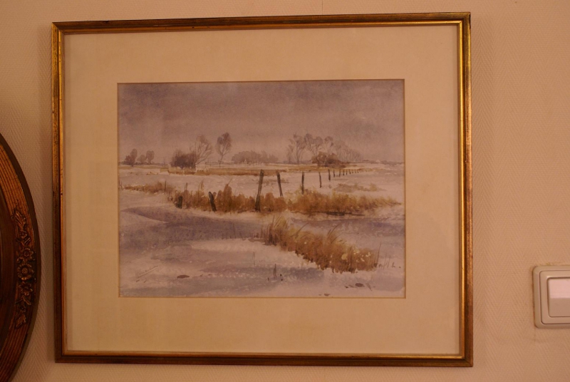 Voorstellende een polderlandschap in de sneeuw, onduidelijk gesigneerd.