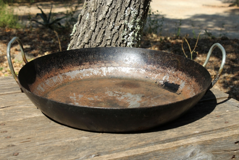 Hele grote ronde schaal, van oorsprong een braadpan geweest.